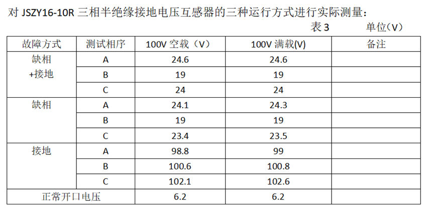 3. 當(dāng)出現(xiàn)斷線缺相和缺相且PT缺相端接地時(shí),這三種電壓互感器的數(shù)值接近于100/3V;但究其原因是三只線圈的剩余繞組串在一起,與其內(nèi)阻及伏安特性的匹配性能影響較大;