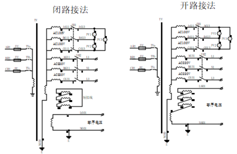 三相五柱電壓互感器的2種試驗(yàn)方法接線圖