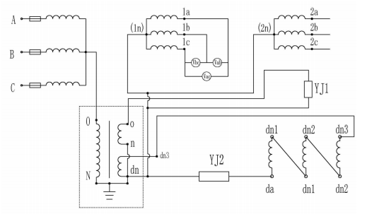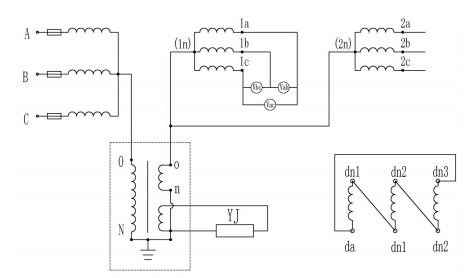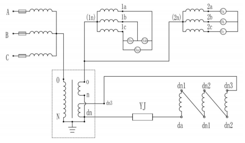 方案二存在的問題是 1a、1b、1c 經(jīng)過消諧 PT 繞組后,容量下降很大,約為30%左右,如果是做為計量使用,當(dāng)系統(tǒng)出現(xiàn)諧波時,對計量干擾很大,基本不能有效的進行電量的測量。