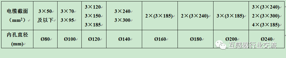 孔徑要根據(jù)穿過零序互感器的電纜總直徑來匹配,下表是常規(guī)匹配數(shù)據(jù):