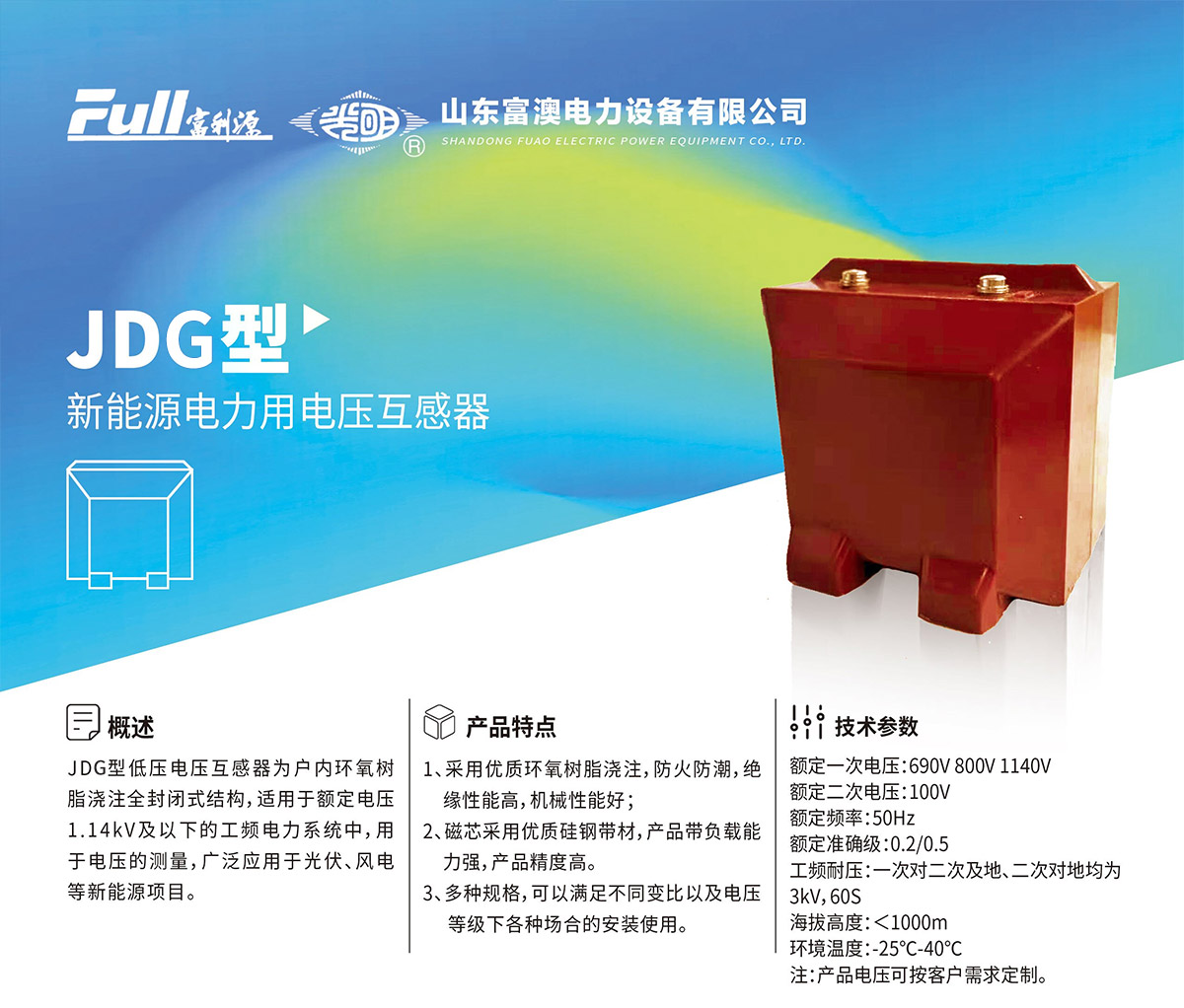產(chǎn)品介紹:JDG型低壓電壓互感器為戶內(nèi)環(huán)氧樹脂澆注全封閉式結(jié)構(gòu),適用于額定電壓1.14kV及以下的工頻電力系統(tǒng)中,用于電壓的測量,廣泛應(yīng)用于光伏、風(fēng)電等新能源項目。